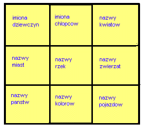 pola, wymieniajac, w szybkim tempie, wyrazy z pierwszej kategorii, np.: