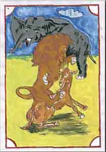The lion asked for help and an elephant came with its trunk full of water. The elephant put out the fire and took the lion on its back. The lion felt very well up there and he didn't want to get down any more. The elephant asked all the animals to help him to be free again but nobody helped him. A goat had enough courage to tell the lion to get down the elephant's back. The king of the animals got down on goat's back. Poor goat could only say: "I prefer to die instead of concealing an injustice." The race is not to the swift, nor the battle to the strong.
