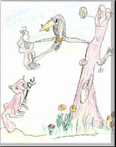 A fox was passing there and wanted that piece of cheese. He began to flatter the crow saying it was very nice and it was very clever. The fox asked the crow to sing. Very flattered, the stupid crow began to sing but dropped the cheese from its beak. Beware of flatterers! |