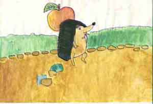 He found a radiant big red apple that he took with him to decorate his hiding place. He fell asleep and twisted many times in his sleep because the apple smelled beautifully. When he woke up in the morning he didn't find his desired fruit. He began to complain his neighbours that someone stole his apple. One of them told him: "We accuse too easy the others for our negligent! What do you carry in your pricks? Haven't you noticed yet?" The poor hedgehog should know: Such beginning, such end. Retold and English version: Ovidiu Robu