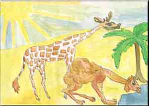 They brought offences each other; or the giraffe has a neck too long or the camel has the hump too big. One day the savanna burned and the fire drove away them in the desert. They caught only to take something to eat and a little water. On the way, the camel kept food for the giraffe, said: "I have enough reserves in my hump!" When they arrived to an oasis came the turn of the giraffe to reward the gesture of the camel because it has a long neck, it torn leaves by palm trees and it gave them to the giraffe. By then the camel and the giraffe remain friends. A friend in need is a friend indeed! |